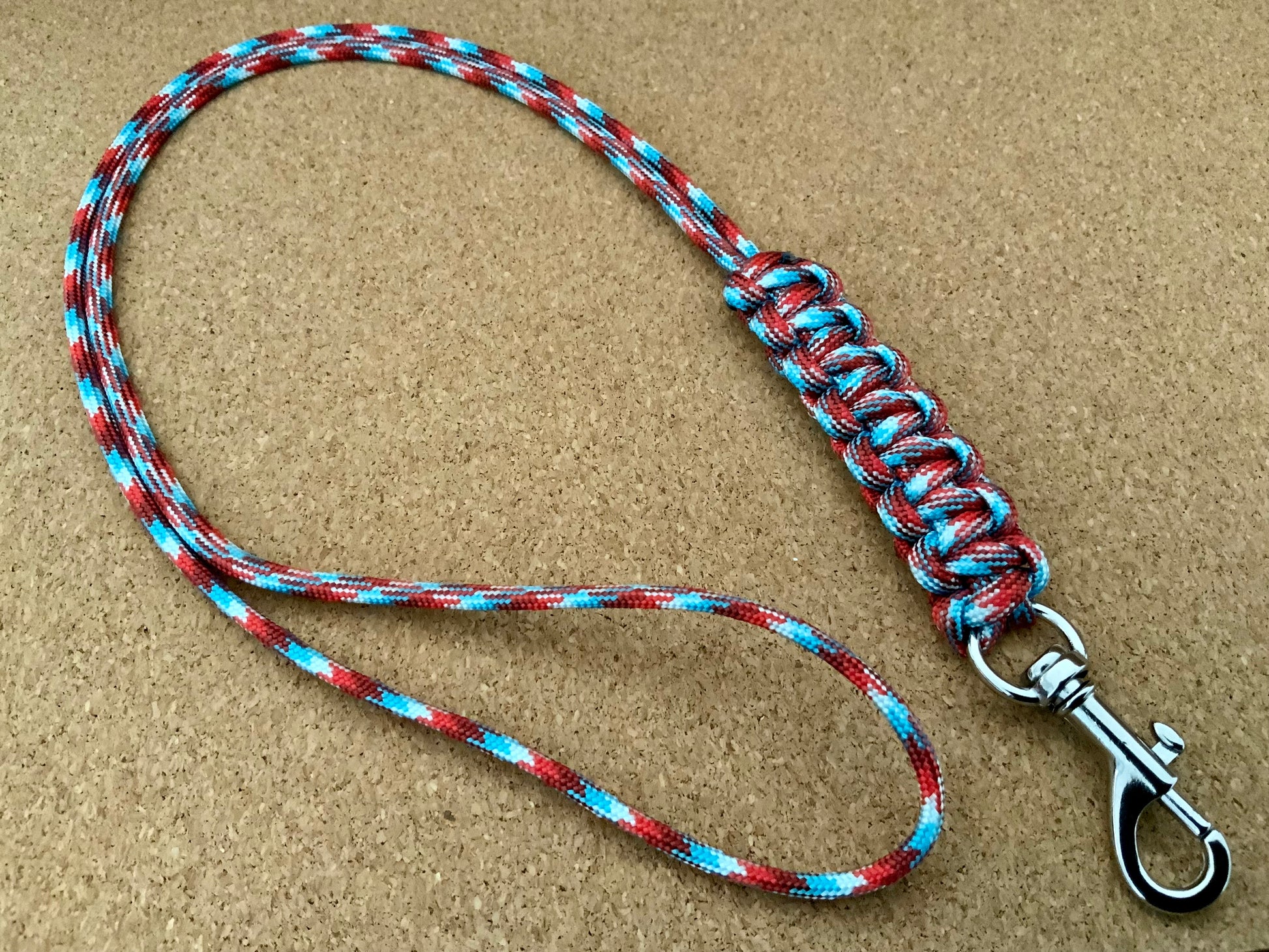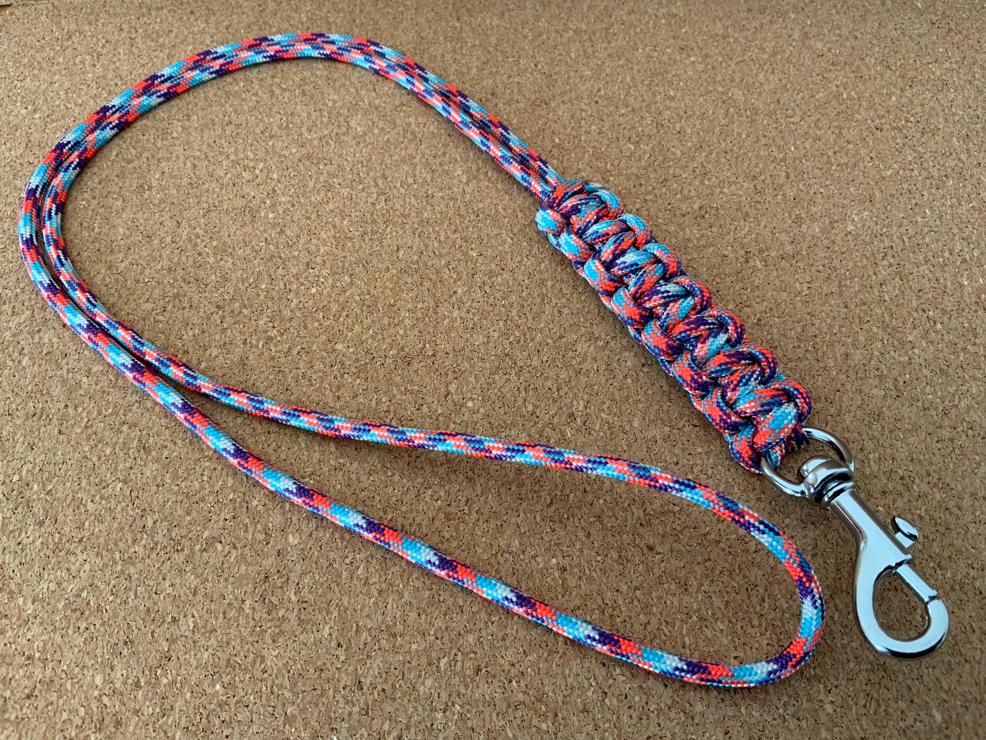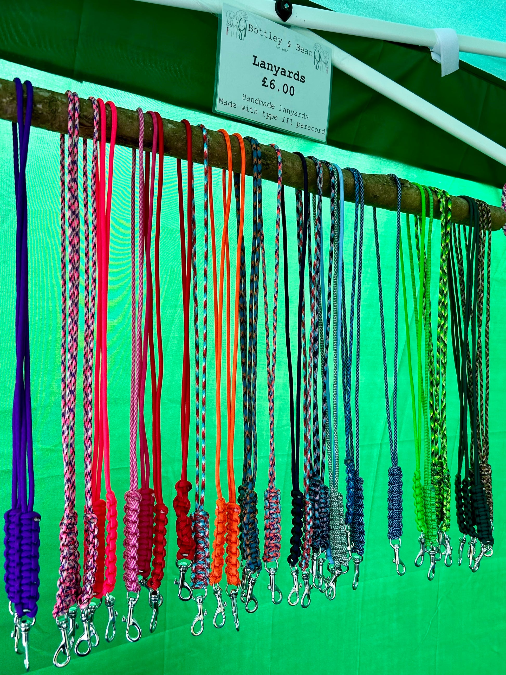 Handmade paracord lanyards. Knotted with the cobra knot, using type III paracord. Approx. 46cm in length. Trigger clip at the end to attach whistle, ID card, keys etc.